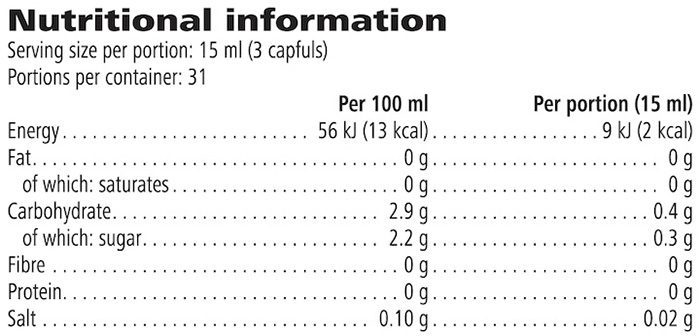 - Free from colourants, sweeteners and flavourings