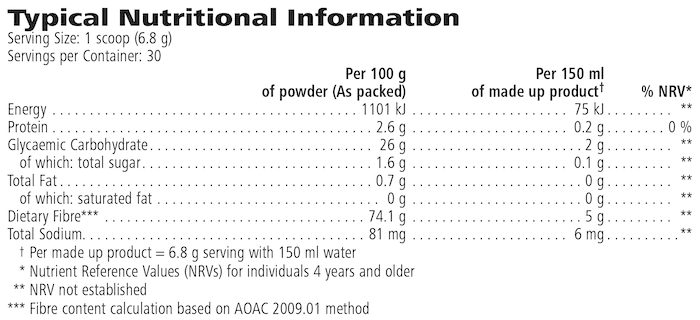 ✔ Only 75 kJ per serving when mixed with 150 ml of water